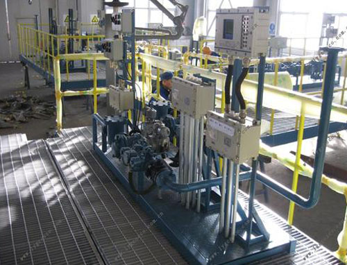 油品定量裝車橇裝組是指將每一個裝車鶴位內(nèi)的儀表和設備集成在一個專用的框架結(jié)構(gòu)內(nèi),儀表和設備包括裝車鶴管、流量計、防溢油靜電報警控制器、壓力變送器、裝車流量控制閥、緊急切斷閥,裝車泵、批量控制器等, 只預留工藝連接口和控制電源和通訊接口,這個整體集成部分稱為裝車橇。與傳統(tǒng)的裝車控制系統(tǒng)就地組裝比較,裝車橇可以節(jié)省現(xiàn)場設計和現(xiàn)場施工量,縮短項目工期,提高裝車控制系統(tǒng)的質(zhì)量。